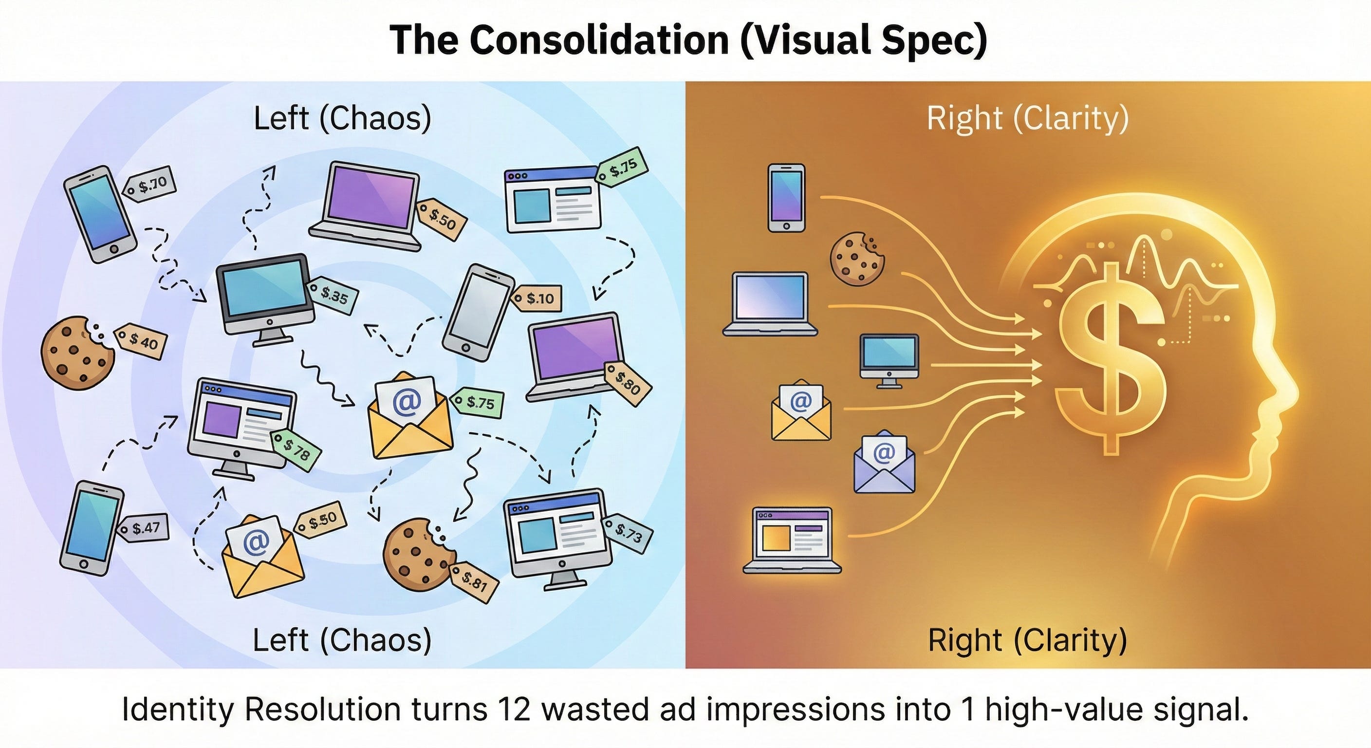 Identity Resolution stitches these 12 ghosts into one Golden Record, it stops the waste: tt creates the signal your AI needs to predict the future.