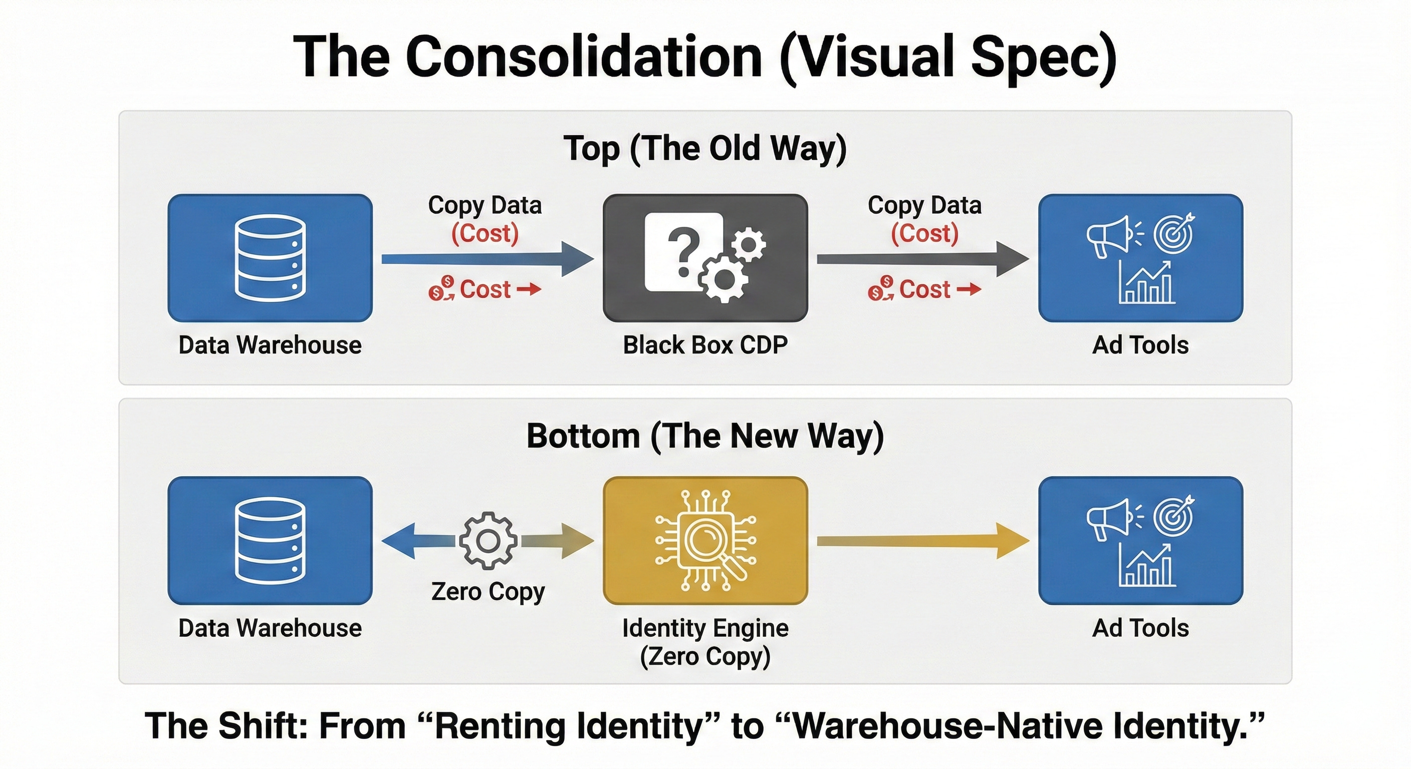 The New Standard: Warehouse-Native (Zero-Copy) Do not move data to the tool. The tool comes to your data. Modern identity engines run directly on your infrastructure.