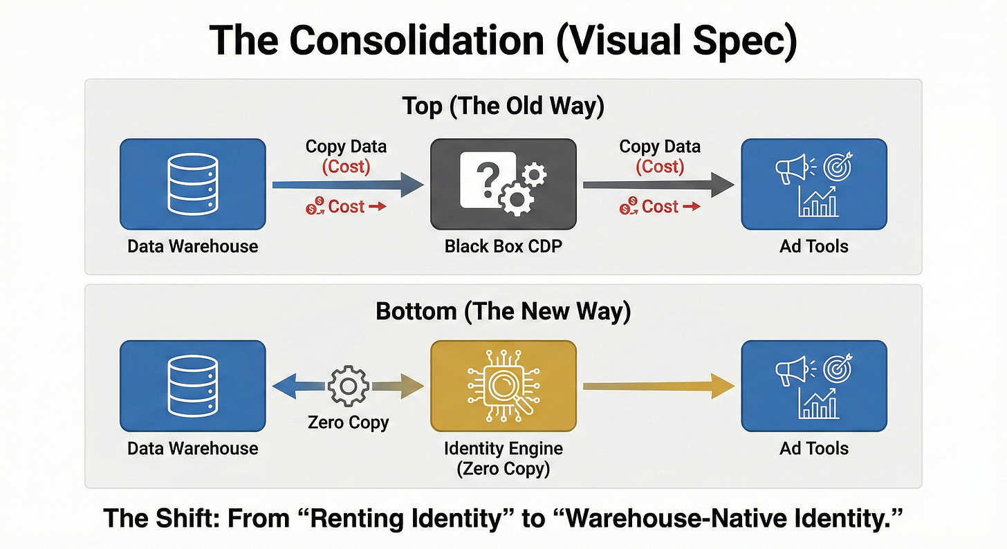 Historically, you solved this by buying a “Black Box” CDP (Customer Data Platform). You sent data to a vendor, they crunched it, they sold it back to you.
